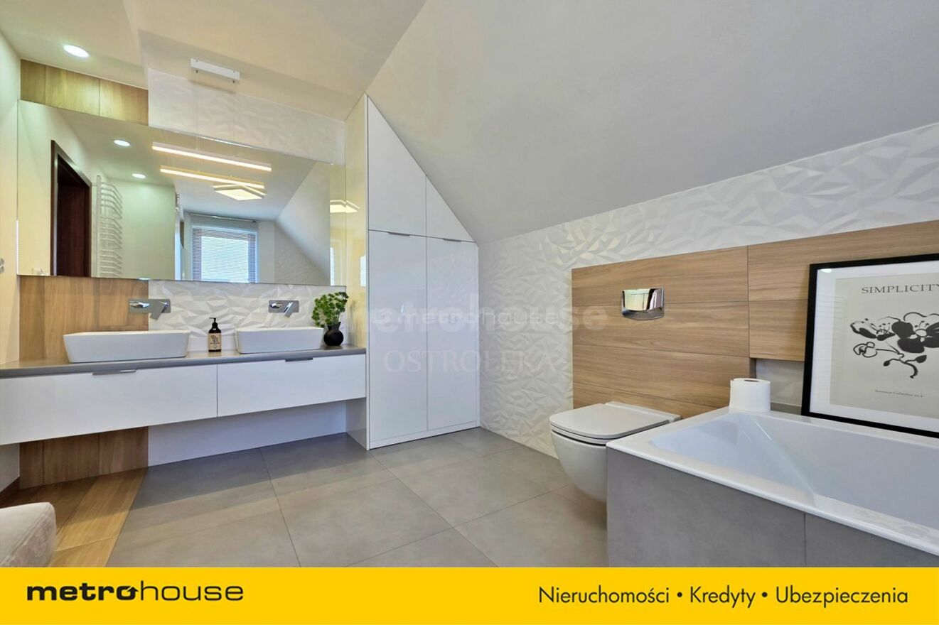 Na sprzedaż stylowy dom o powierzchni użytkowej 142,42 m2, położony w miejscowości Obierwia (gm. Lelis), zaledwie 15 kilometrów od centrum Ostrołęki. Budynek został wybudowany w 2012 roku z pustaka i jest ogrzewany gazem z sieci, co zapewnia wygodę oraz oszczędność. Do nieruchomości doprowadzona jest woda z sieci, a dodatkowo znajduje się tu studnia głębinowa, idealna do podlewania ogrodu.Działka o powierzchni 25 arów została starannie zagospodarowana, tworząc harmonijną przestrzeń wokół domu. Podjazd został wyłożony kostką, a granice działki obsadzono tujami, które nadają jej elegancji i zapewniają prywatność. Na tyłach posesji rosną drzewa, tworząc naturalną, zieloną enklawę. Dodatkowym atutem jest system automatycznego nawadniania, który ułatwia pielęgnację ogrodu.